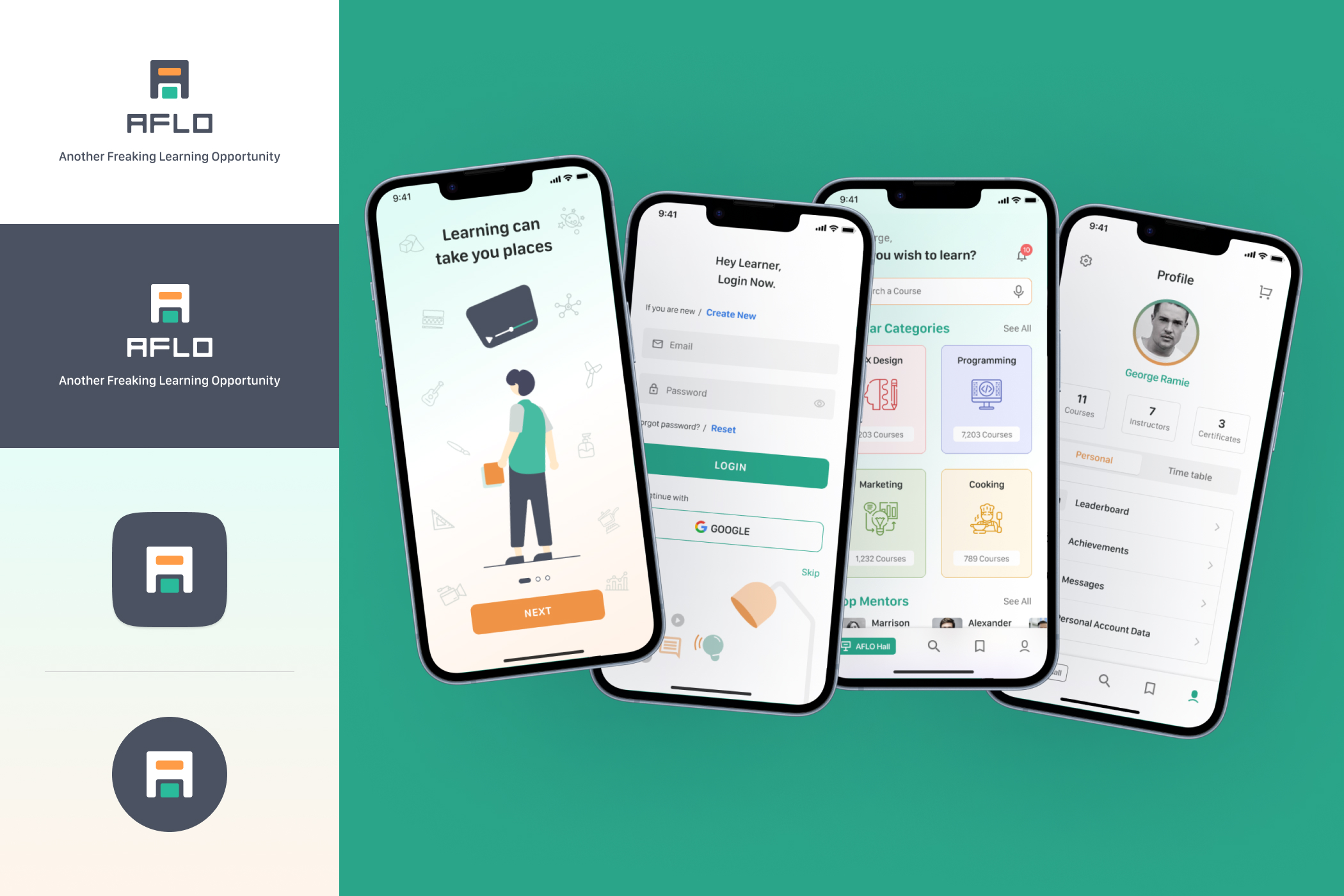 Mobile App Screens for eLearning App - AFLO.